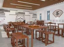 精雕細(xì)琢的古色課桌,教室四周滿墻古色裝幀的壁..